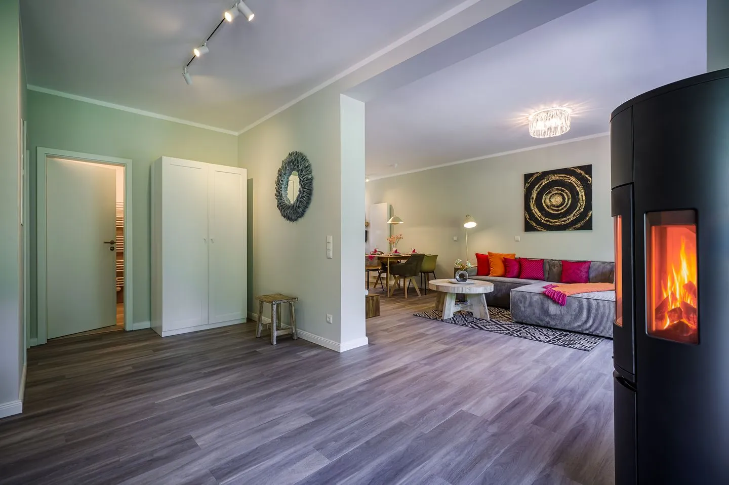 Unsere Ferienwohnung „Strandfeuer“ ist wie ein Sonnenuntergang am Meer: warm, einladend, lebendig. Rote und orangefarbene Akzente treffen auf natürliche Holztöne, ein Ofen sorgt für gemütliche Abende, Kerzen und Laternen schaffen Atmosphäre. Hier darfst du auftanken, dich inspirieren lassen – oder einfach den Moment genießen. Mit viel Liebe zum Detail wurde die Wohnung frisch renoviert und neu eingerichtet – als Ort für Ruhe, Rückzug und maritimes Wohlgefühl.