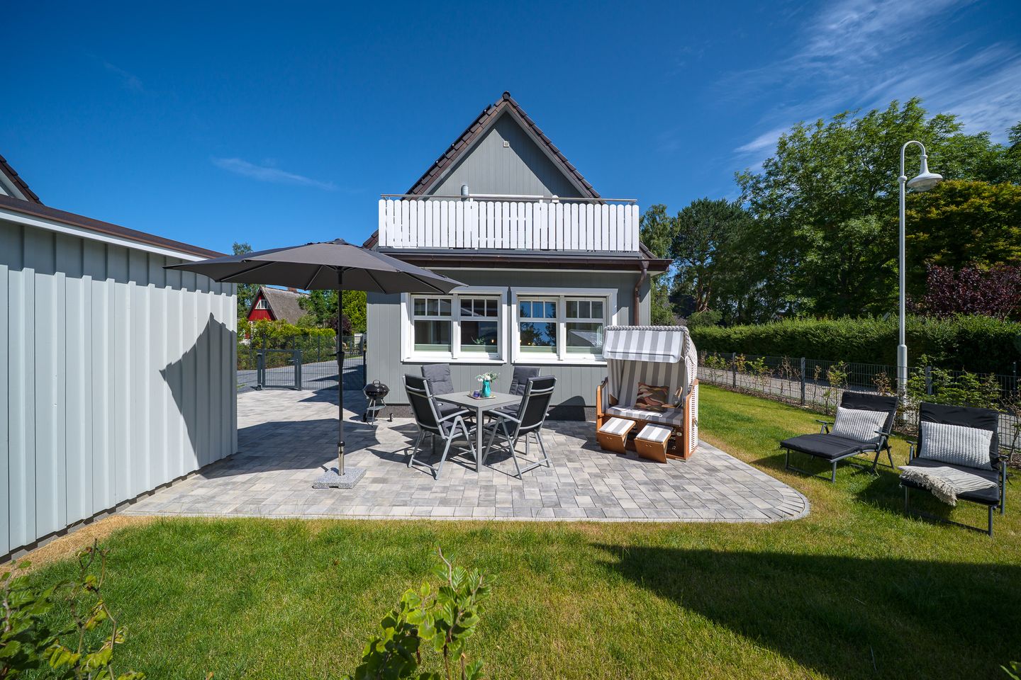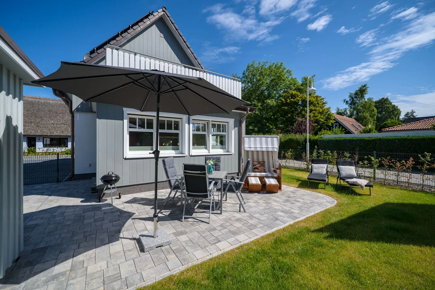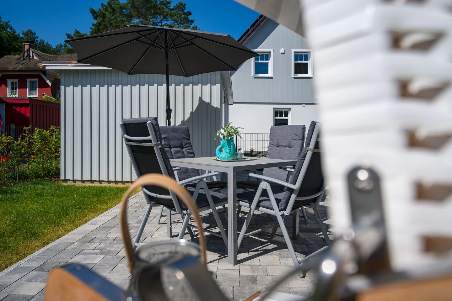 Der Außenbereich lädt mit einem Garten, möblierten Terrassenflächen sowie einem überdachten Balkon zu entspannten Stunden ein. Ein privater Strandkorb steht bereit und die Gartenmöbel laden zum Loungen oder gemeinsamen Essen an der frischen Luft ein. Für Grillliebhaber steht ein Kohlegrill zur Verfügung, an dem Sie kulinarische Abende im Freien verbringen können. Die Sauna des Hauses ermöglicht besonderen Wellnessgenuss, unabhängig vom Wetter. Das abgeschlossene Grundstück gibt Familien mit Kindern sowie Gästen, die Wert auf Privatsphäre legen, zusätzliche Sicherheit und Geborgenheit.