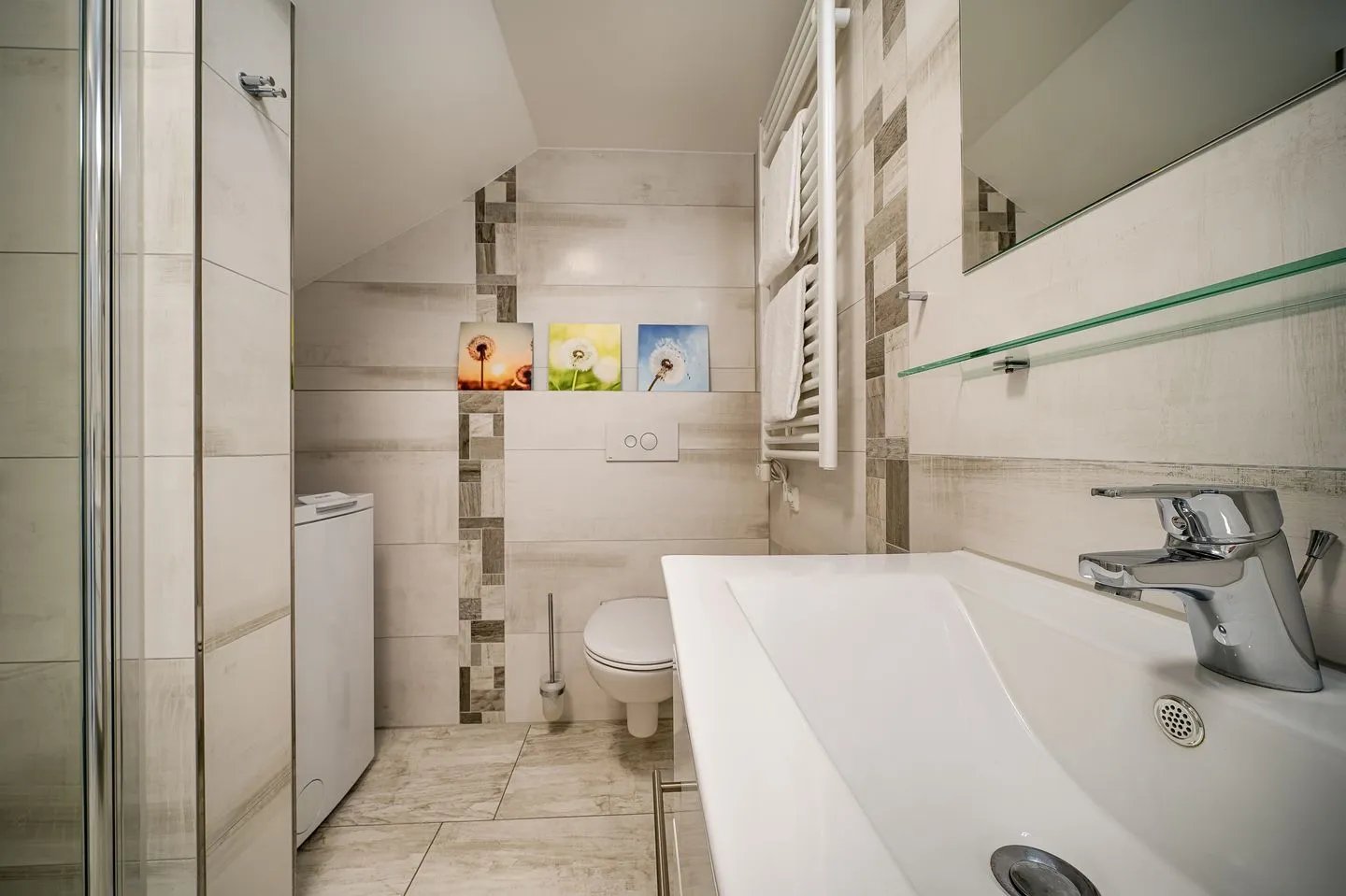 Bad mit ebenerdiger Dusche, Waschmaschine (ohne Gebühr)
